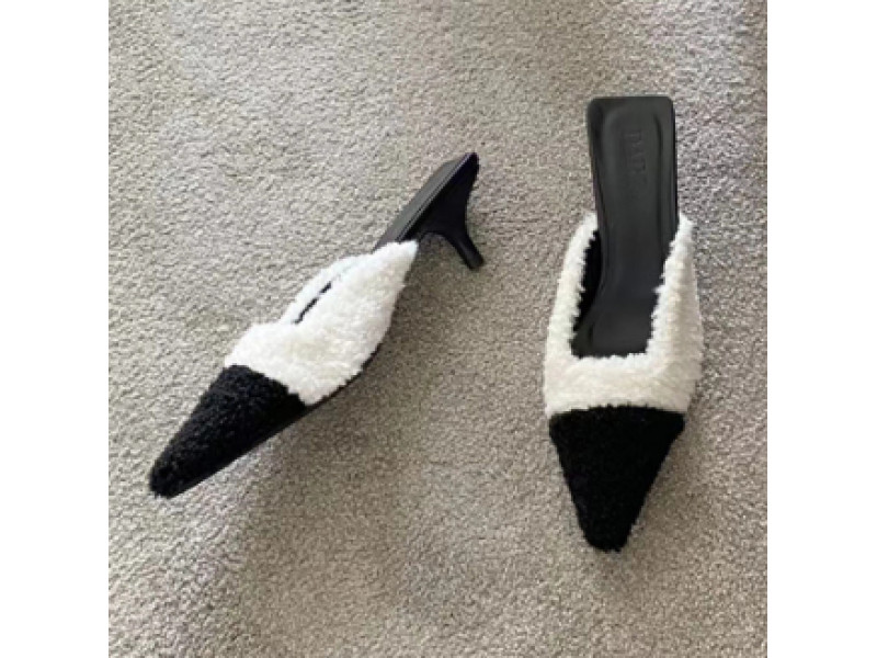 • Color Matching Lamb Wool Keep Warm Women's Slippers Thin High Heels Women Outside Shoes Fashion Modern Slippers 2023 New
