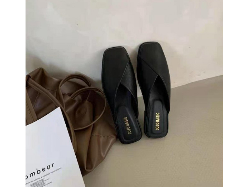 • Flat Slippers 2022 New Fashion Khaki Leather Casual Outside Beach Summer Mules Shoes for Women